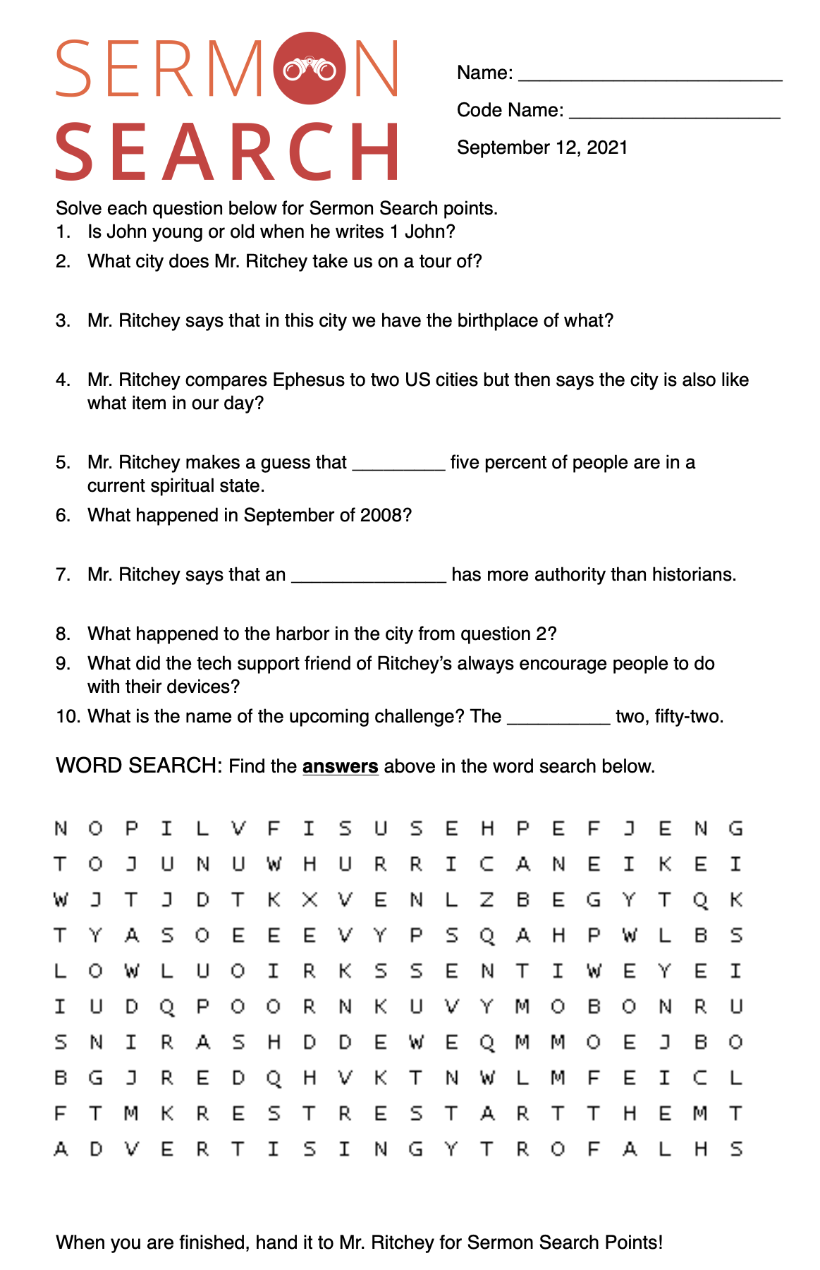 Please SCROLL DOWN FOR Your Sunday Morning Materials!